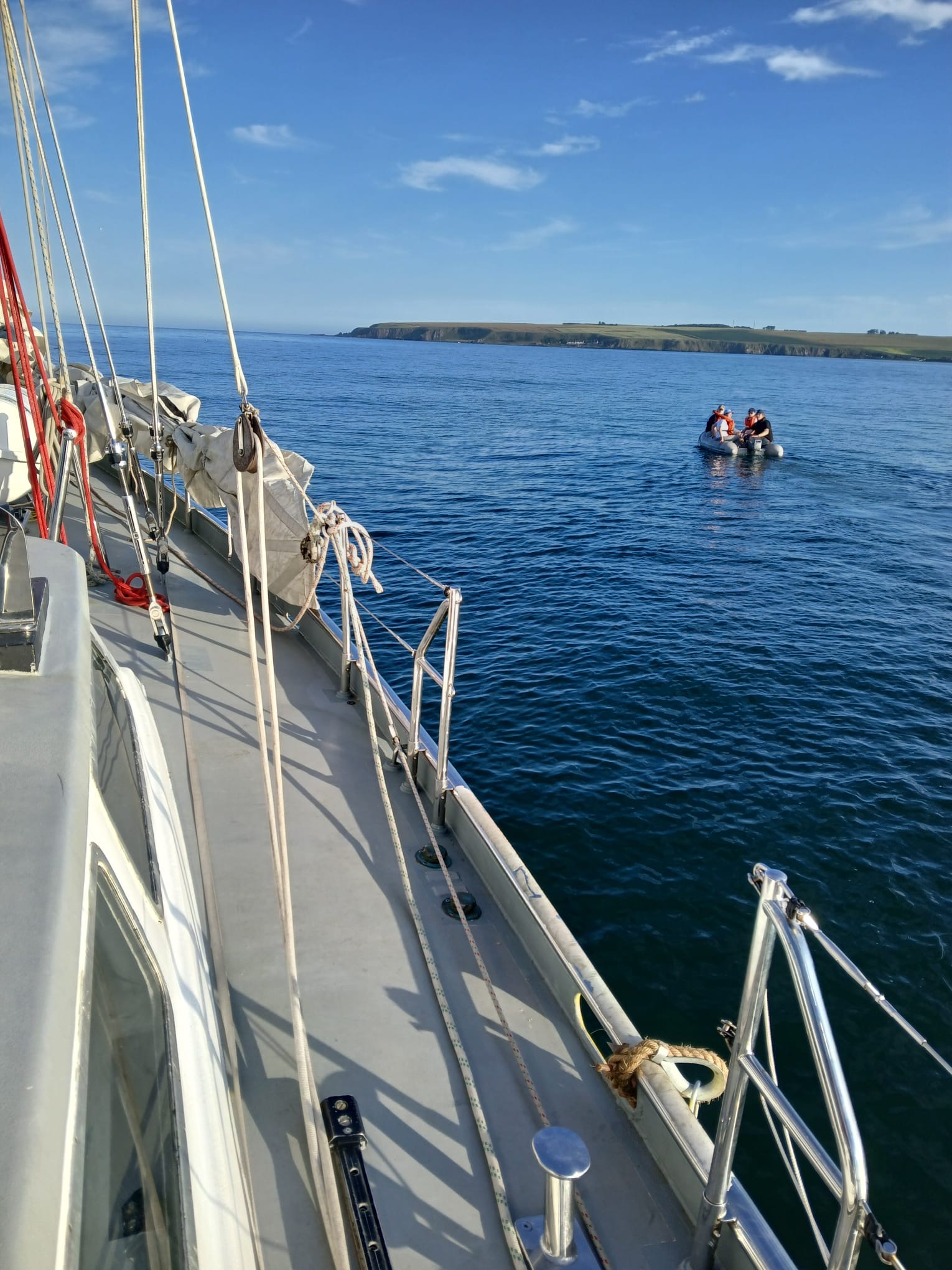 In the morning, we woke up to fog and the boat was surrounded by thousands of moon jellyfish - a very exciting but strange sight! After breakfast, the dinghy was lowered into the water, and the Cadets & Staff had the opportunity to row the dingy as part of the RYA Competent Crew course. This was a great success with lots of laughs and finally the end of seasickness was on the horizon. The dinghy was then put back on board, and the anchor was raised. The Cadets had to have a sharpened visual lookout as we were still in fog, with the foghorn sounding every 2 mins. Despite the conditions requiring extra concentration, the Cadets were still taking the helm, raising the sails, and all working well as a crew. Later that morning, the fog finally lifted, and we had beautiful clear skies and warm sunshine. More minke whales were spotted on both sides of the boat, and everyone was taking pictures and videos, capturing fantastic memories. We travelled to Lanan Bay and dropped anchor for our 3rd night, which followed again with anchor watch on 3hr shifts.